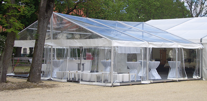 Viele Zeltformate können wir Ihnen in transparenter Optik anbieten